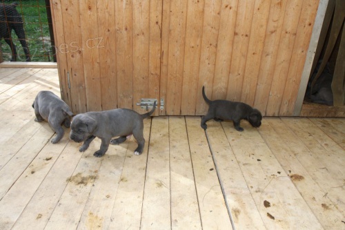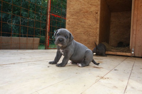 Prodám štěňata Cane corso bez PP, zůstává 5x pejsek, barva modrá a modrá žíhána, čistý původ, k odběru v půlce prázdnin. Kontakt tel: 777 888 881